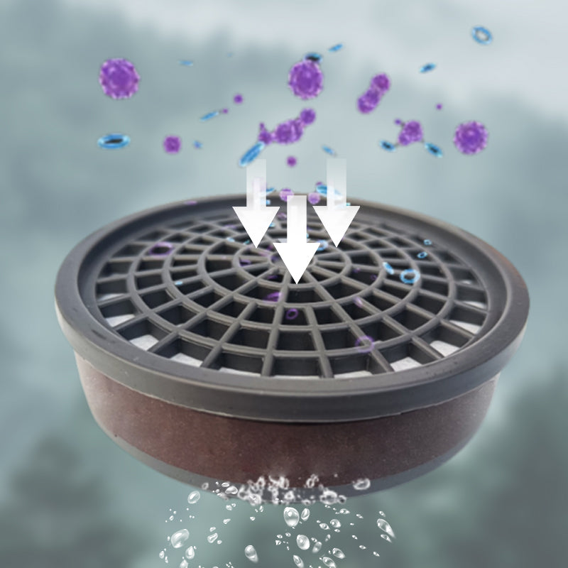 DUBBELE TANK ANTI-GASBESCHERMING - Voorzien van dubbele actieve koolstoffilters, die uitgebreide bescherming bieden tegen schadelijke gassen en stof, zodat de veiligheid in giftige omgevingen gegarandeerd is.