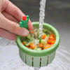Dit schattige vergiet is een meester in het zeven. Het is heel effectief om je gootsteen schoon te houden.