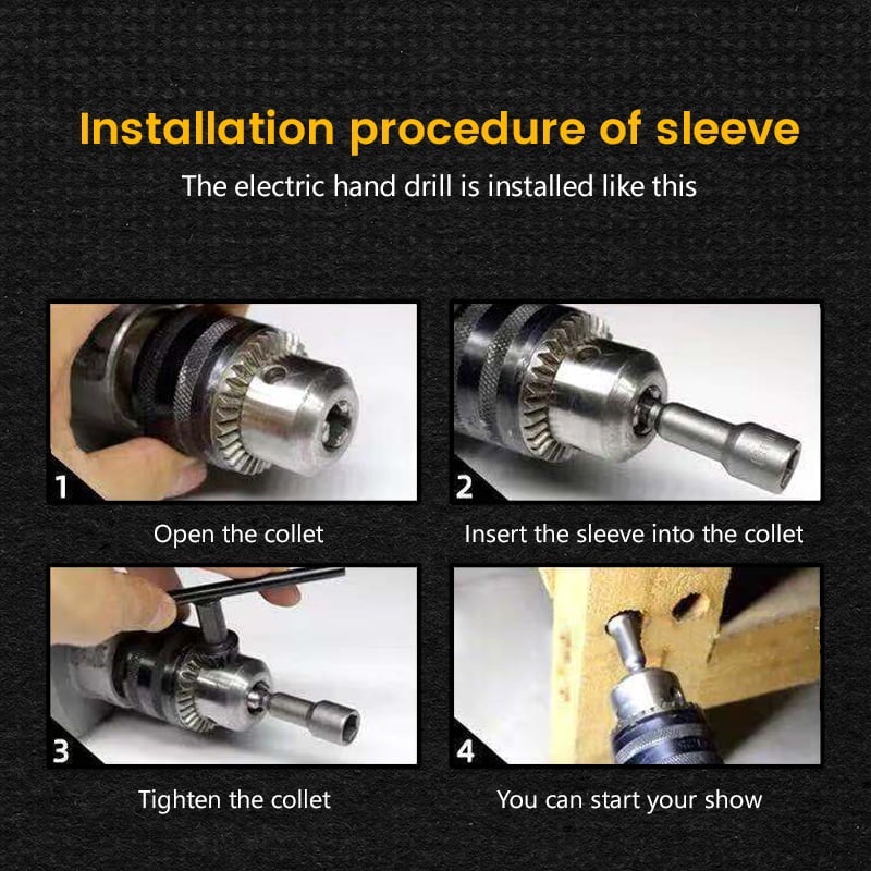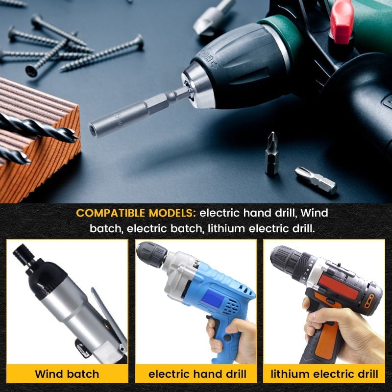 Compatibele modellen: Verdiepte huls, ideaal voor langere schroeven en bouten, maar ook geschikt voor dagelijkse korte bouten. Passend voor de meeste handboor machines, accuboormachines en elektrische schroevendraaiers. -