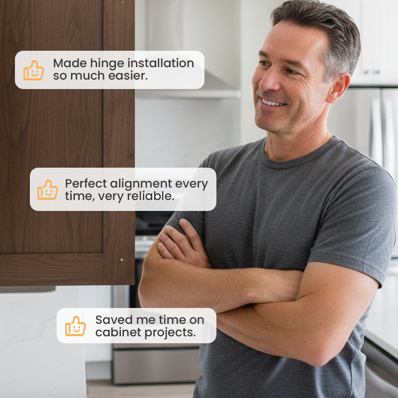 MOEITELOZE INSTALLATIE - Dit hulpmiddel vereenvoudigt het hele installatieproces van scharnieren. Plaats de boormal, markeer of boor, en u bent klaar. Het vermindert de installatietijd en -moeite aanzienlijk, ideaal voor zowel doe-het-zelvers als professionals.